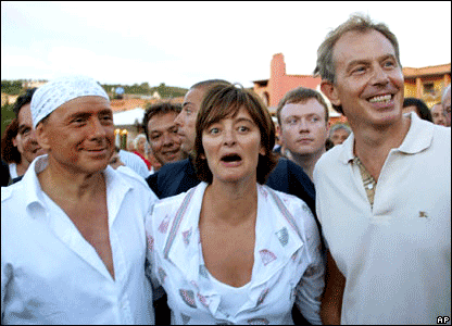 Why is Tony Blair so uptight? Lower your neckline a little, bro. Youre in Sardinia!